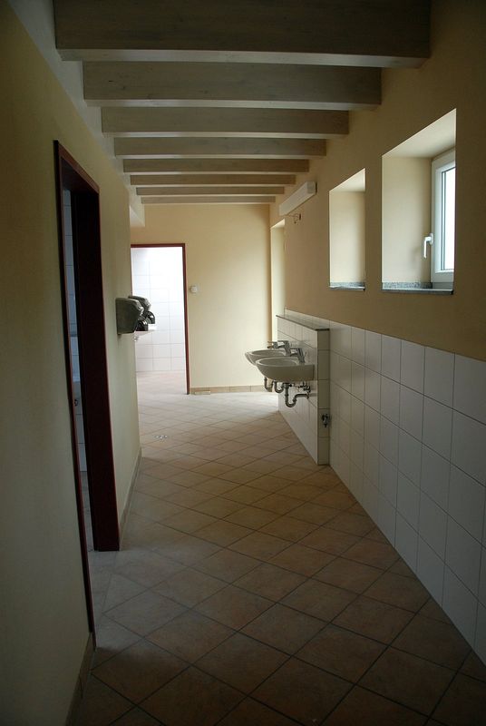 Wir verfügen über 2 Sanitäranlagen auf dem Gelände. Diese bieten einen hohen und modernen Standard. 10 Waschbecken und